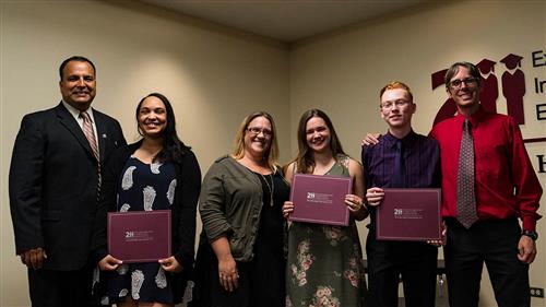 Jasmine Reed (with Alonso Ramirez), Karina Theobald (with Kris Stary), and Scott Johnson (with Chris Quick), all from Palatine High School, were recognized by the Township High School District 211 Board of Education for being recipients of the Gold Apple Scholarship during the District’s June 14, 2018 Board of Education Meeting.